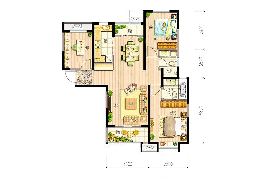 各个空间户型方正,后期空间利用率高;全明户型,各部分空间均有窗,可保证整体空间采光和通风,居住舒适度好;整个户型空间布局合理,做到了干湿分离、动静分离,方便后期生活;卧室厨卫等各个功能区的面积大小都比较合理,居住体验便利,整体舒适度高;公摊高于15%且低于25%,符合住宅公摊正常范围。