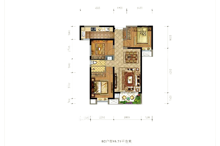 各个空间户型方正,后期空间利用率高;全明户型,各部分空间均有窗,可保证整体空间采光和通风,居住舒适度好;入户门进厨房需要穿过客厅;客厅、卧室、卫生间和厨房等主要功能间的尺寸以及比例适中,有利于采光和通风,居住起来舒适、方便;公摊高于15%且低于25%,符合住宅公摊正常范围。