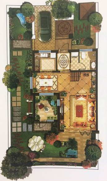 客厅:一个客厅设计,位于一楼,方便接待 卧室:卧室位于二三楼,私密性较好