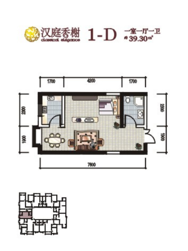 汉庭香榭1室1厅1厨1卫 总价待定