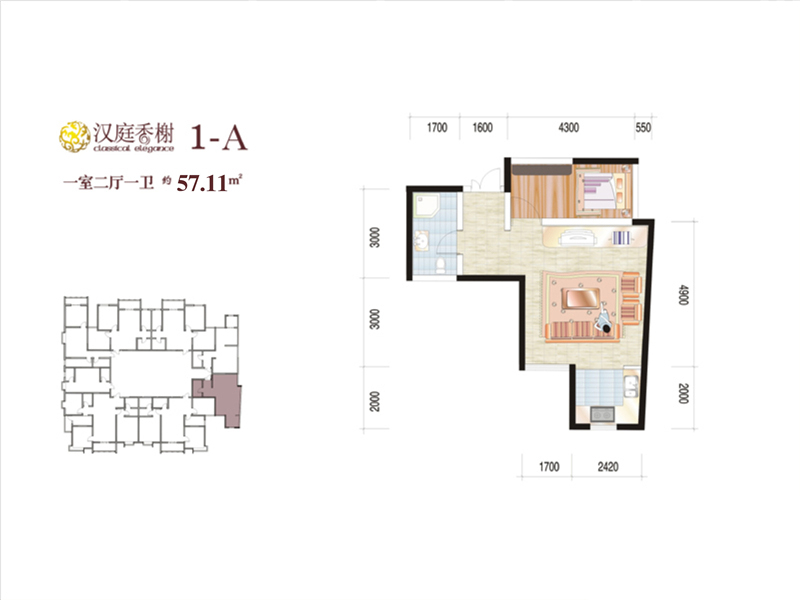 汉庭香榭1室2厅1厨1卫 总价待定