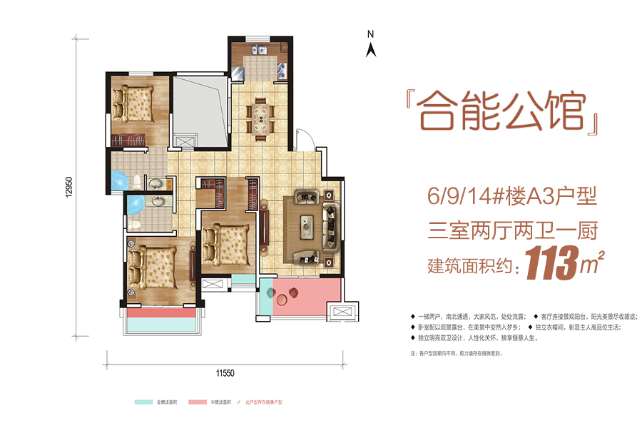 各个空间户型方正,后期空间利用率高;全明户型,各部分空间均有窗,可保证整体空间采光和通风,居住舒适度好;整体空间布局合理,能够保证动静分离和居室通风,方便使用;卧室厨卫等各个功能区的面积大小都比较合理,居住体验便利,整体舒适度高;公摊高于15%且低于25%,符合住宅公摊正常范围。