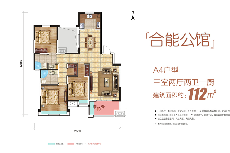整体户型方正,活动区域开阔,居住舒适度高;全明通透户型,居住舒适度较高,整个空间采光充足,利于后期居住;整个户型空间布局合理,做到了干湿分离、动静分离,方便后期生活;客厅、卧室、卫生间和厨房等主要功能间的尺寸以及比例适中,有利于采光和通风,居住起来舒适、方便;公摊高于15%且低于25%,符合住宅公摊