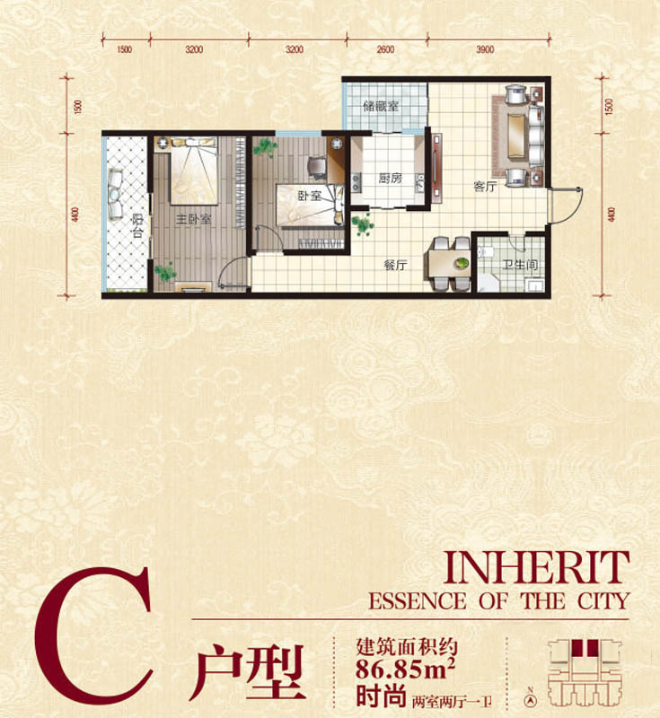 整体户型方正,活动区域开阔,居住舒适度高;客厅、主卧非南向或东向,居室采光一般;户型不是南北通透,后期装修时可以考虑加装纱门改善通风;入户门进厨房需要穿过客厅;卫生间偏小,通过合理选择卫浴家具也可让卫生间实现其使用功能;公摊高于15%且低于25%,符合住宅公摊正常范围。
