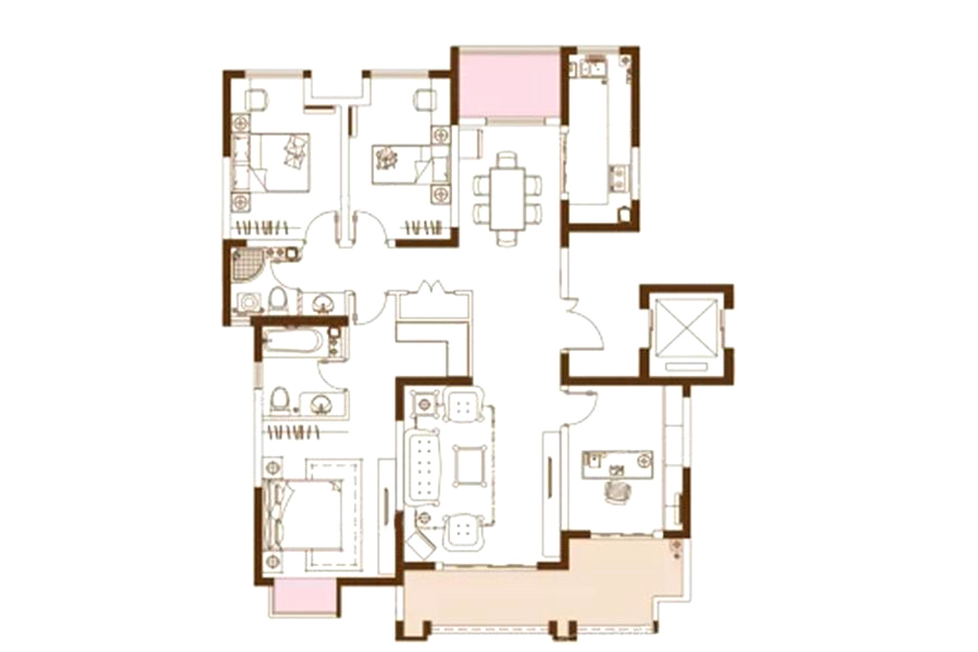 各个空间户型方正,方便室内家具布置;全明通透户型,居住舒适度较高,整个空间采光充足,利于后期居住;整体空间布局合理,能够保证动静分离和居室通风,方便使用;客厅、卧室、卫生间和厨房等主要功能间的尺寸以及比例适中,有利于采光和通风,居住起来舒适、方便;公摊高于15%且低于25%,符合住宅公摊正常范围。