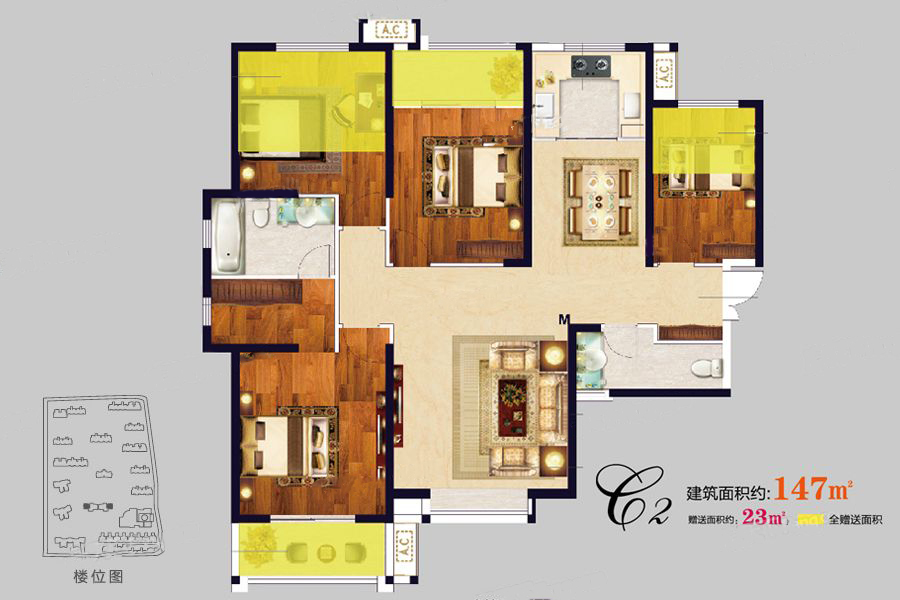 各个空间户型方正,后期空间利用率高;整个空间全明通透,采光良好,同时利于居住空间通风;整个户型空间布局合理,做到了干湿分离、动静分离,方便后期生活;客厅、卧室、卫生间和厨房等主要功能间的尺寸以及比例适中,有利于采光和通风,居住起来舒适、方便;公摊高于15%且低于25%,符合住宅公摊正常范围。