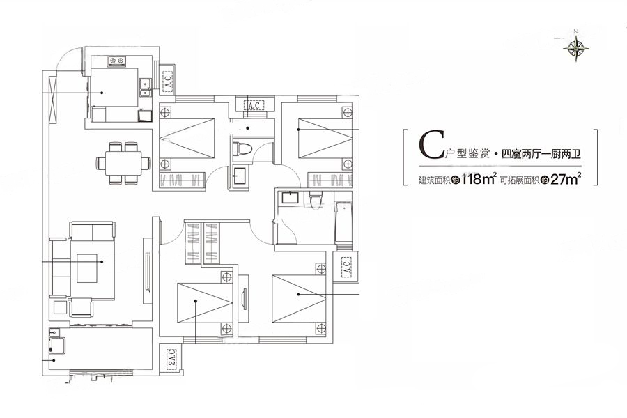 华洲城·云顶4室2厅1厨2卫 总价待定