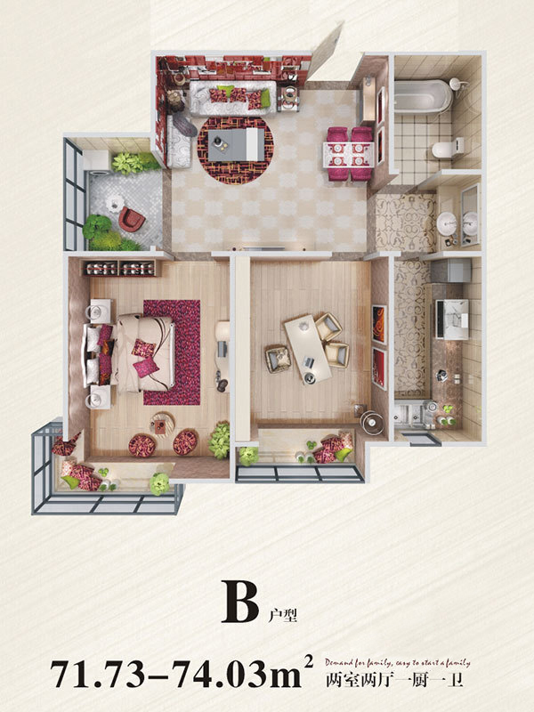 各个空间户型方正,后期空间利用率高;户型不是南北通透,整体空间无穿堂风;整体空间布局合理,能够保证动静分离和居室通风,方便使用;卫生间偏小,通过合理选择卫浴家具也可让卫生间实现其使用功能;公摊高于15%且低于25%,符合住宅公摊正常范围。