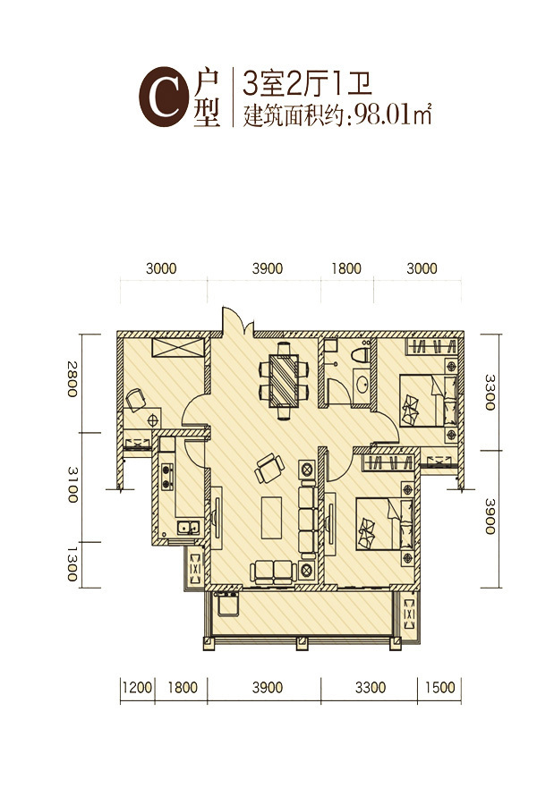 建面:98.01 ㎡ 均价待定