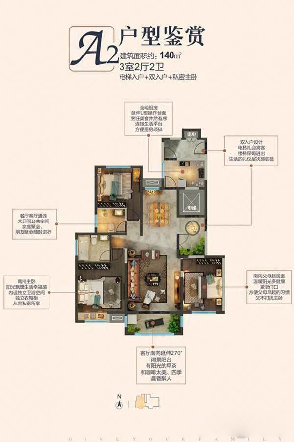 整体户型方正,活动区域开阔,居住舒适度高;整个空间全明通透,采光良好,同时利于居住空间通风;卧室作为休息区域,门朝向客厅或餐厅时,私密性一般;各个功能区的尺寸比例规范,布局合理,能很好地满足日常功能需求,整体空间开阔,采光充足,居住舒适度好;公摊高于25%。