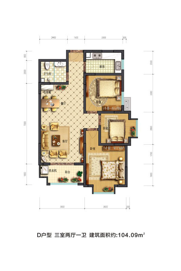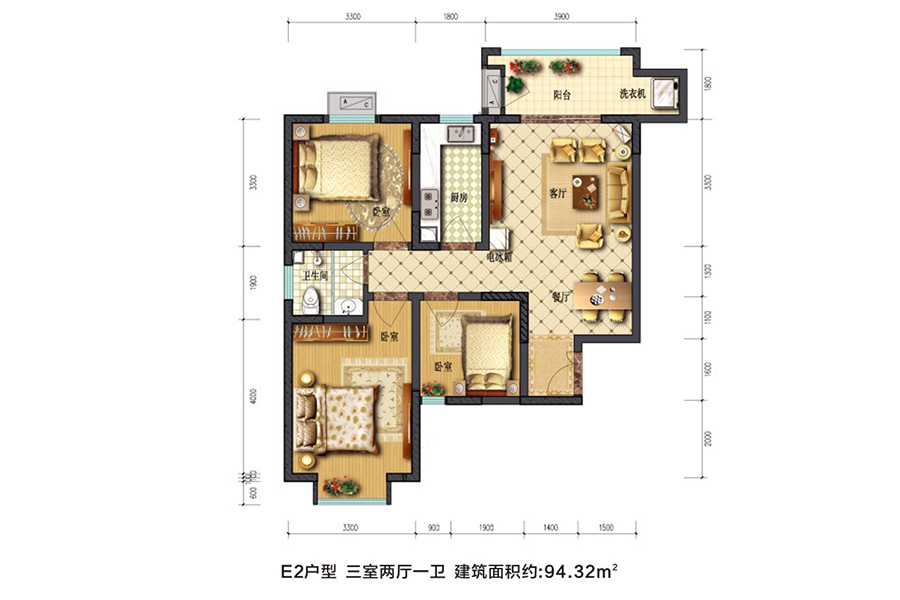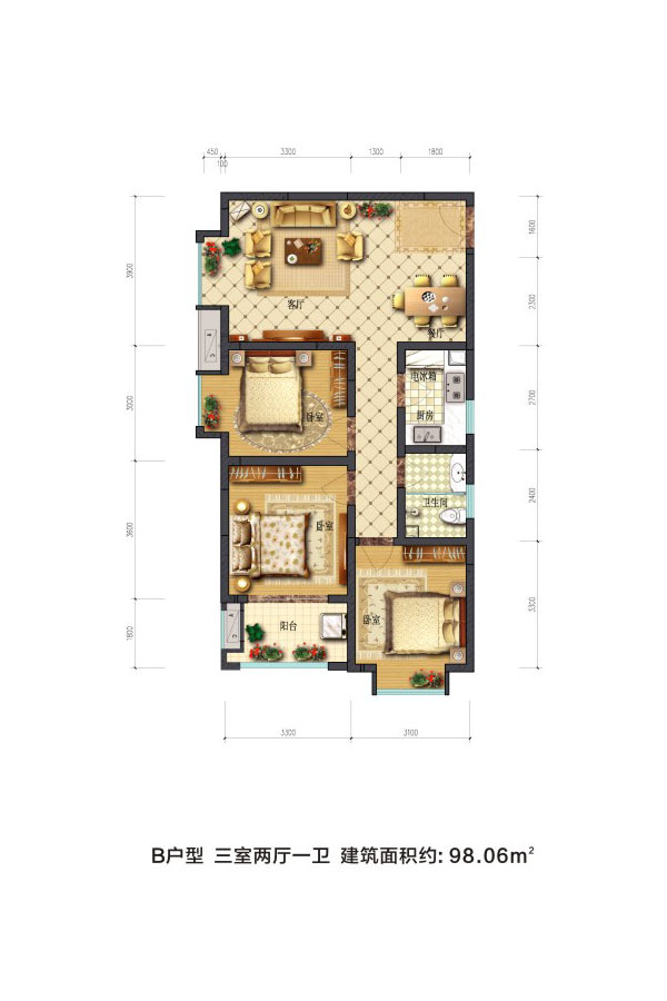 除主卧和客厅之外的其他空间不方正;客厅、主卧非南向或东向,居室采光一般;户型不是南北通透,整体空间无穿堂风;卧室作为休息区域,门朝向客厅或餐厅时,私密性一般;卫生间偏小,通过合理选择卫浴家具也可让卫生间实现其使用功能;厨房空间不算开阔,日常使用功能可以满足,后期要减少不必要的器具装配,避免空间更加局
