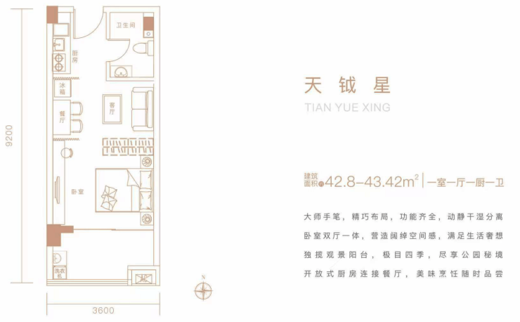 面积区间:32-42-57-82㎡臻装公寓,标准层面积约1369平米