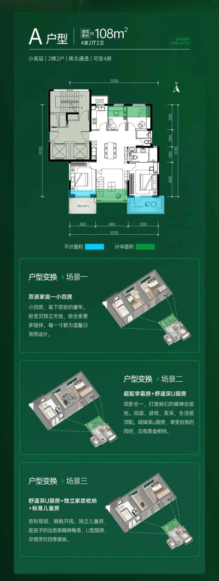 建筑面积约:108㎡、126㎡、139㎡2T2四代宅