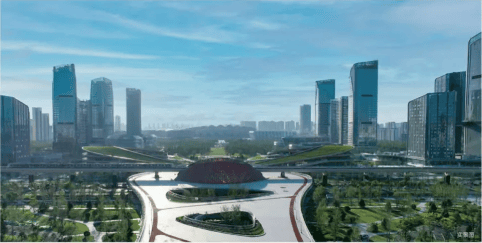 以10栋建筑围合布局,形成以大中庭为中心的场景集合人与生活在此交互