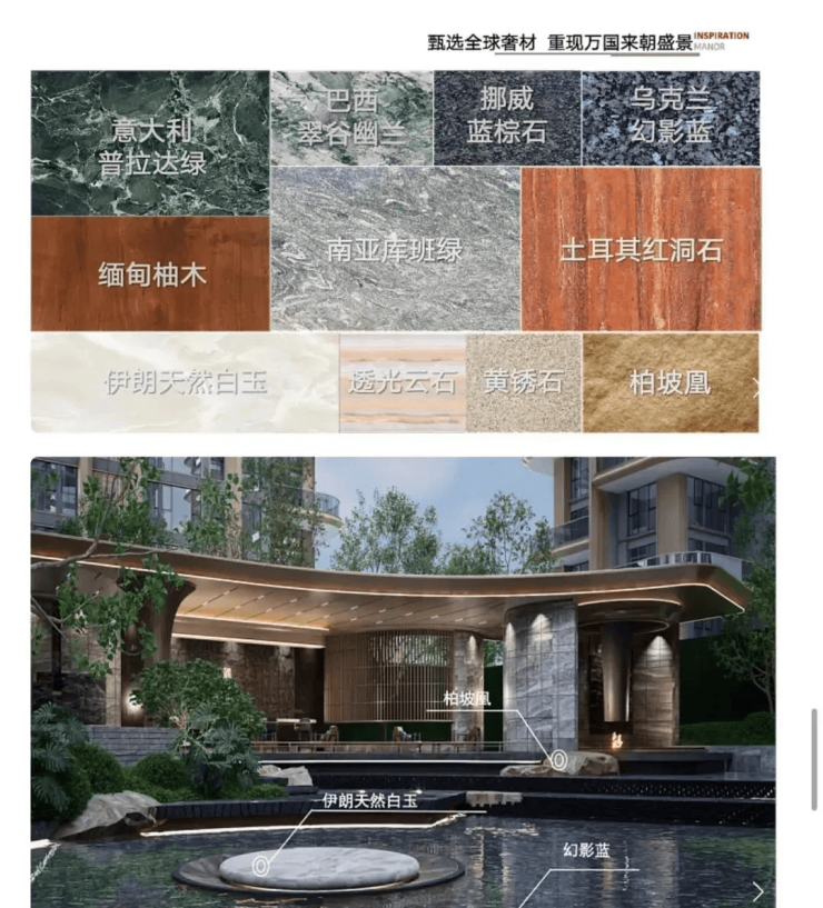 沿丝绸之路撷取全球珍稀奢材,荟萃南亚库邦绿、意大利普拉达绿、土耳其红洞石、乌克兰幻影蓝、伊朗天然白玉、巴西翠谷幽兰、稀产柏坡凰等奢石;臻选缅甸80年以上柚木等稀贵木材,通过奢材肌理的时空对话,重现“九天阊阖开宫殿,万国衣冠拜冕旒"的盛唐气象,让盛唐包容天下的美学基因在钢筋铁骨中重生
