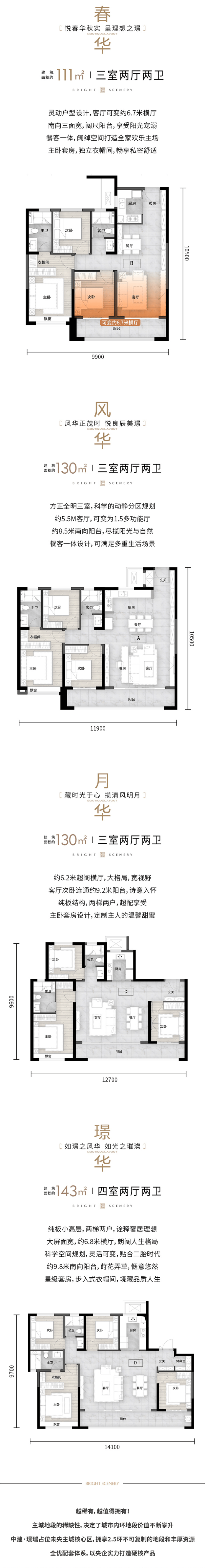 楼盘户型建面:111-143㎡