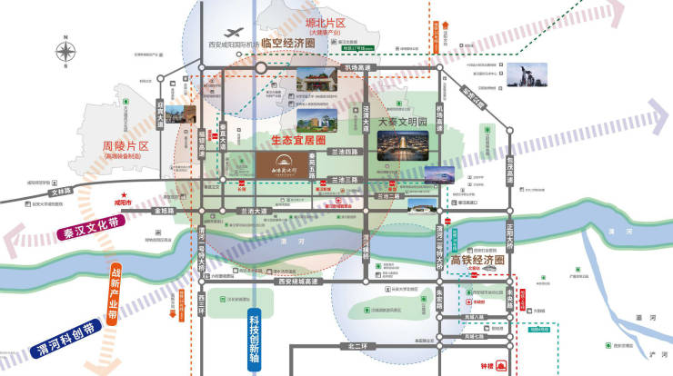 近邻地铁14号线(秦汉新城站),兰池大道,四横三纵路网,北连机场高速,东接西铜高速,多维立体交通环绕,直通北客站、西安咸阳国际机场、西安主城区,完美融入大西安都市圈,繁华生活尽享。