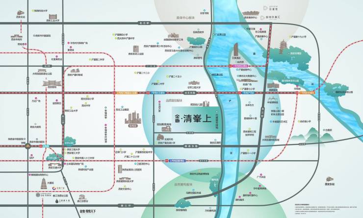 金地·清峯上位居3环内主城心,占位浐河西岸,浐灞生态区腹地,区域发展醇熟,繁华商业汇聚,自然资源环伺,城市配套高度聚集。同时,浐灞生态区作为国家级生态区,是西安对外开放的窗口与名片,居住价值、土地价值、投资价值在此凝聚,备受置业者热捧。