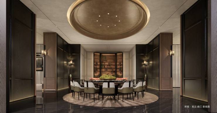 以悬浮式下沉庭院,转译盛唐亭台楼阁意境,融梨园宴饮之风雅,再造现代版“曲水流觞”之趣。力求“宅、园、水、院”立体交融,借天地之景纳四时之变,营造出休憩、观景、交流多元立体社交会客厅。