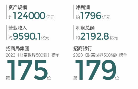 2022年,招商局资产规模约124000亿元,营业收入约9590亿元净利润约1796亿元,连续18年荣获国务院国资委经营业绩考核A级连续六个任期荣获“业绩优秀企业”8月2日发布的2023年《财富》世界500强榜单中,招商局集团、招商银行连续多年双双入榜