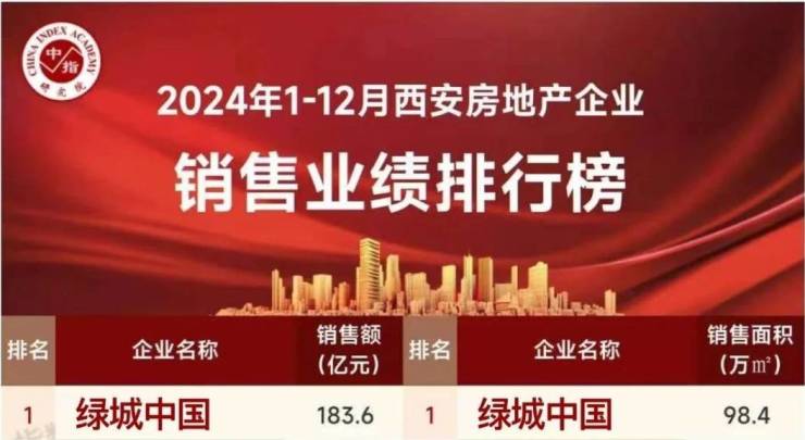 2022年、2023年、2024年绿城连续3年斩获西安房企销售额、销售面积TOP1