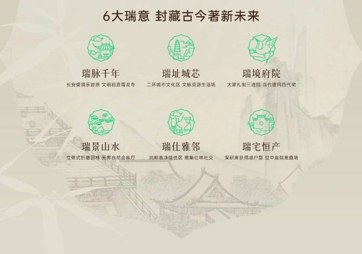 乐游原雄踞长安城之巅,东临浐河西接曲江,映合周易六爻上卦中九五之位,祥瑞贵址,福祚绵长。世代帝王在此兴造乐苑,李商隐、白居易等诗坛巨擘登高咏叹,留下“夕阳无限好"等百余篇锦绣诗文。