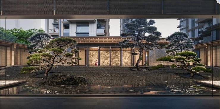 承袭青龙寺【三门九殿】中轴对称格局,以府院之制,演绎中式住区门仪礼制--三进院。高台基座之上,铺陈拾级递进、平步青云的归家动线。定制瑞兽甪端于门前矗守镇宅,盛迎八方尊荣。