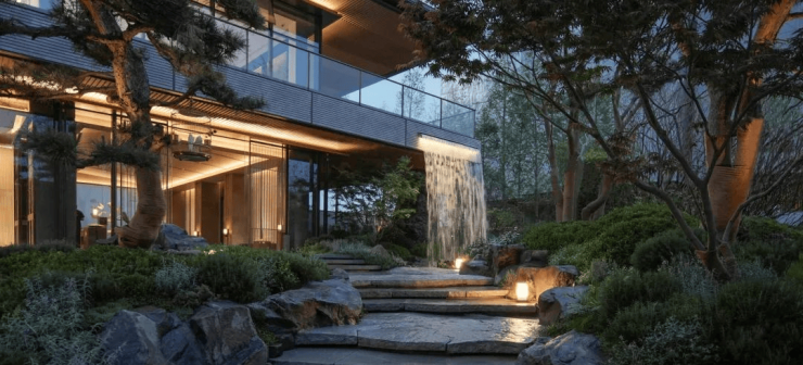 采撷古代经典《营造法式》与现代技法结合,传承宫殿式“三进”院落门第礼序,营造重门深院意境,韵味天成。