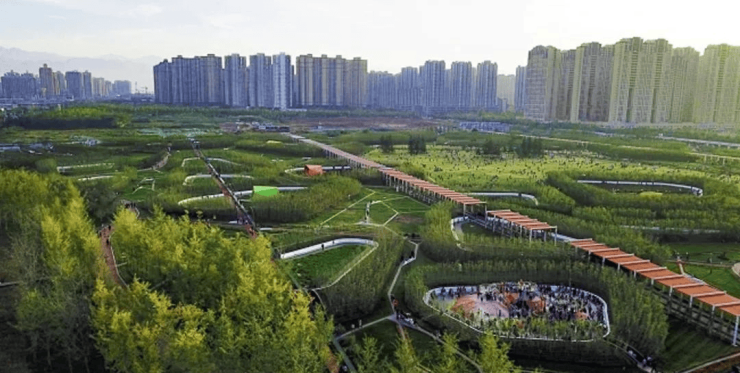 六景:林下阅读区、全龄活动区、户外学习区、林下休闲区、青年健身区、户外洽谈区