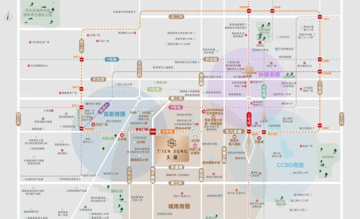 天颂,作为金辉三大产品系之上,又一全新高端迭境之作,占位城南正芯丈八东路与电子正街交汇地,西接高新,东临曲江,珍罕土地之上,匠著同频国际人居理念,为高知人群定制的雅奢生活范本。