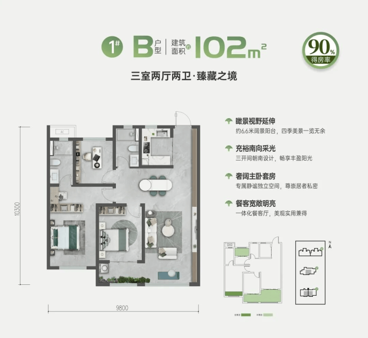 户型面积:建面约102m²-139m²精质小高/宽幕洋房