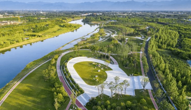 能源金贸区占据沣渭两河交汇,原生水岸群落,南北白沙滩、落雁桥、白鹭桥等自然生态网红打卡,区域内50%绿化水系面积,将真正“绿肺”还给城市。