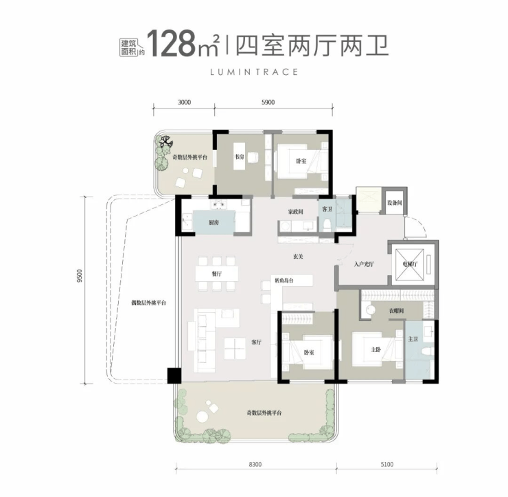 【户型面积】:99㎡-170㎡奢适四代宅