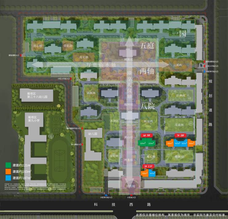 景观规划角度来看,项目约120亩的土地(相当于1.5倍的木塔寺公园)来打造出百米间距的中庭景观、休闲社交园林、氧吧健身区等“五庭八院一园”的14个景观盒子,一个社交式东方意境园林。