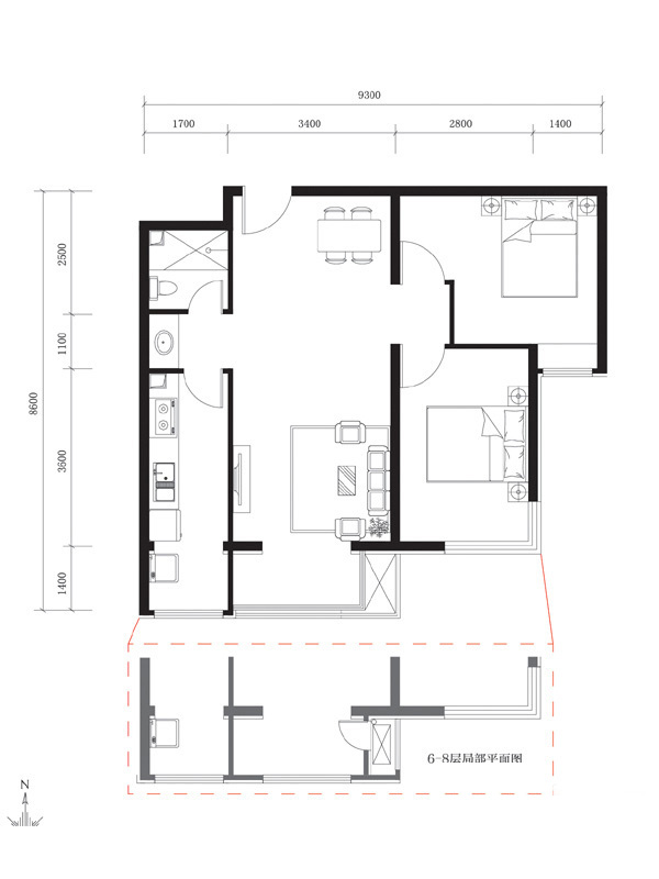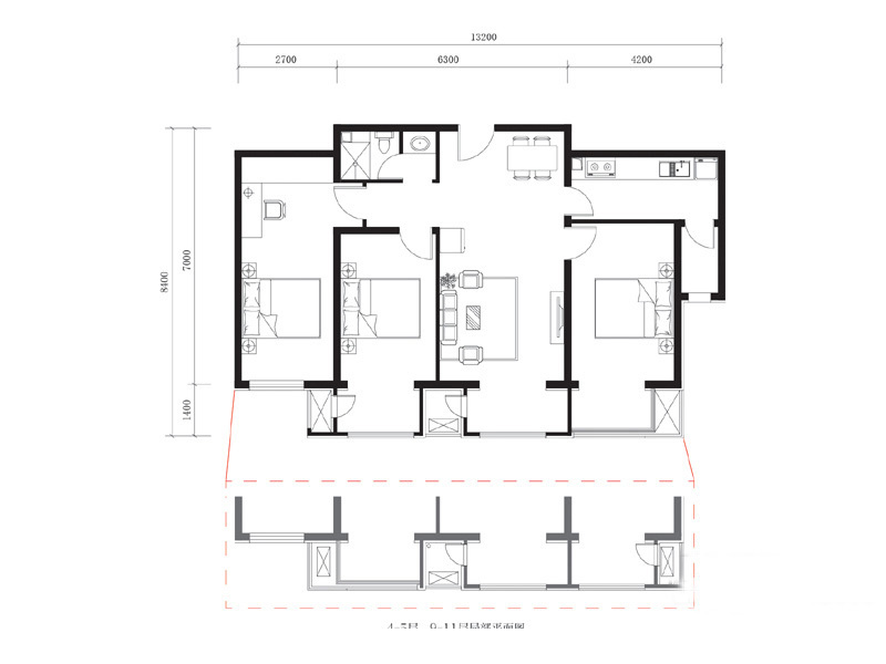 各个空间户型方正,后期空间利用率高;全明户型,各部分空间均有窗,可保证整体空间采光和通风,居住舒适度好;卧室作为休息区域,门朝向客厅或餐厅时,私密性一般;厨房门对着客厅,室内通风好,则无需顾虑油烟的困扰;卧室厨卫等各个功能区的面积大小都比较合理,居住体验便利,整体舒适度高;公摊高于25%。
