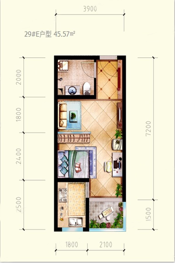 建面:45.57 ㎡ 均价待定