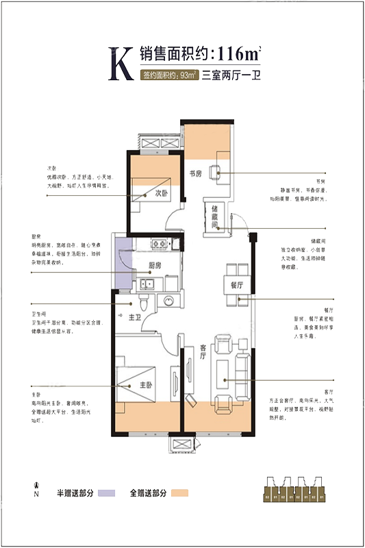 整体户型方正,活动区域开阔,居住舒适度高;整个空间全明通透,采光良好,同时利于居住空间通风;卧室进卫生间需要穿过餐厅或客厅;客厅、卧室、卫生间和厨房等主要功能间的尺寸以及比例适中,有利于采光和通风,居住起来舒适、方便;公摊低于15%,属于目前市场中公摊很低的户型。