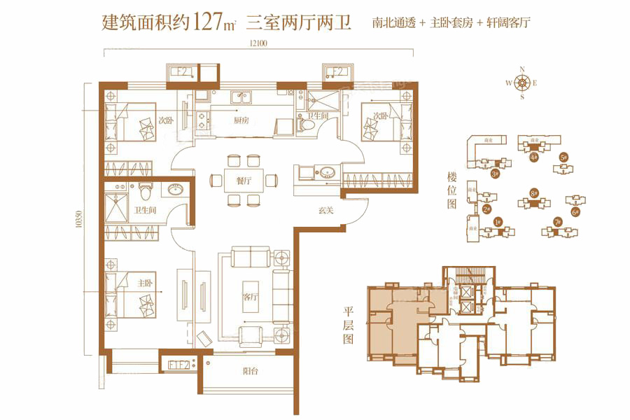 整体户型方正,活动区域开阔,居住舒适度高;全明通透户型,居住舒适度较高,整个空间采光充足,利于后期居住;卧室进卫生间需要穿过餐厅或客厅;各个功能区的尺寸比例规范,布局合理,能很好地满足日常功能需求,整体空间开阔,采光充足,居住舒适度好;