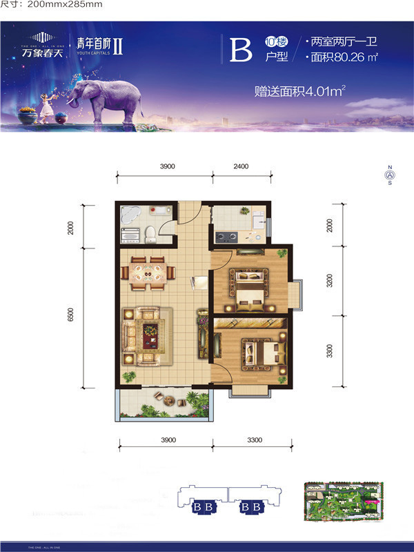 万象春天2室2厅1厨1卫 总价待定