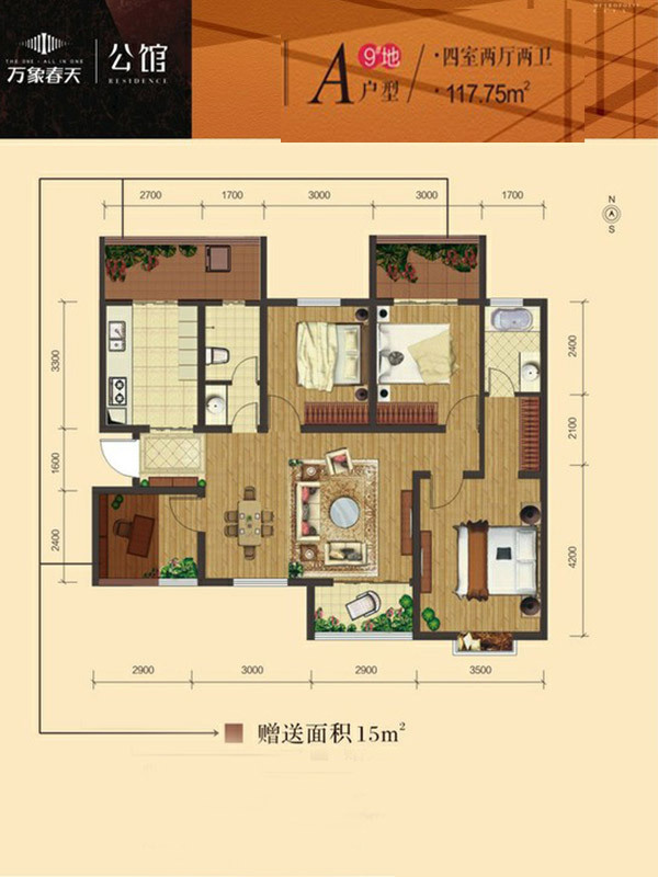 万象春天4室2厅1厨2卫 总价待定