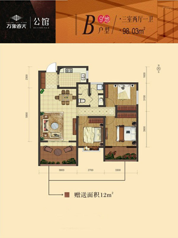 万象春天3室2厅1厨1卫 总价待定
