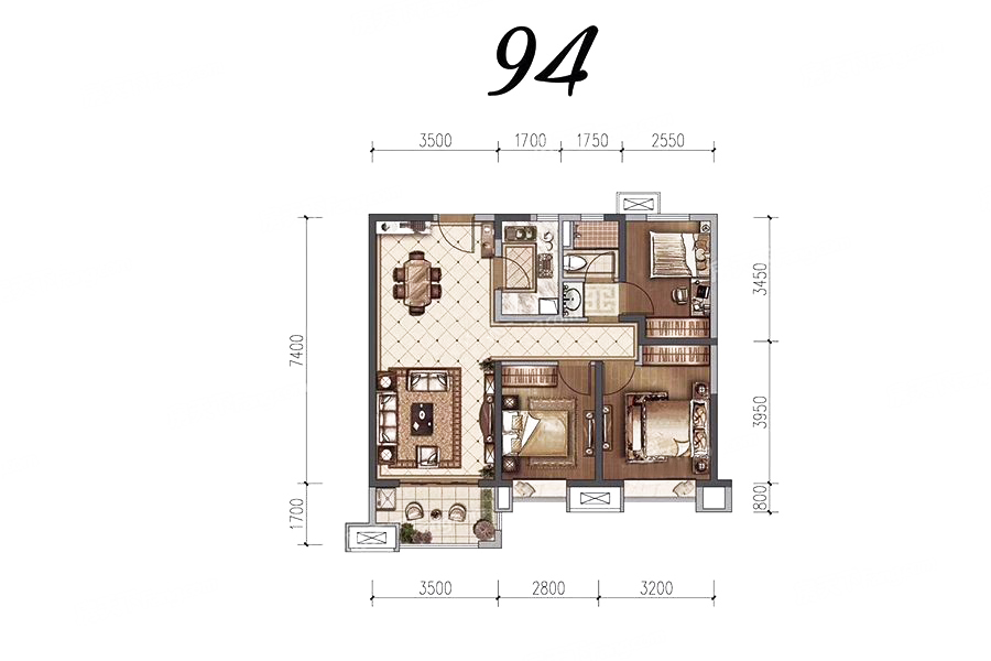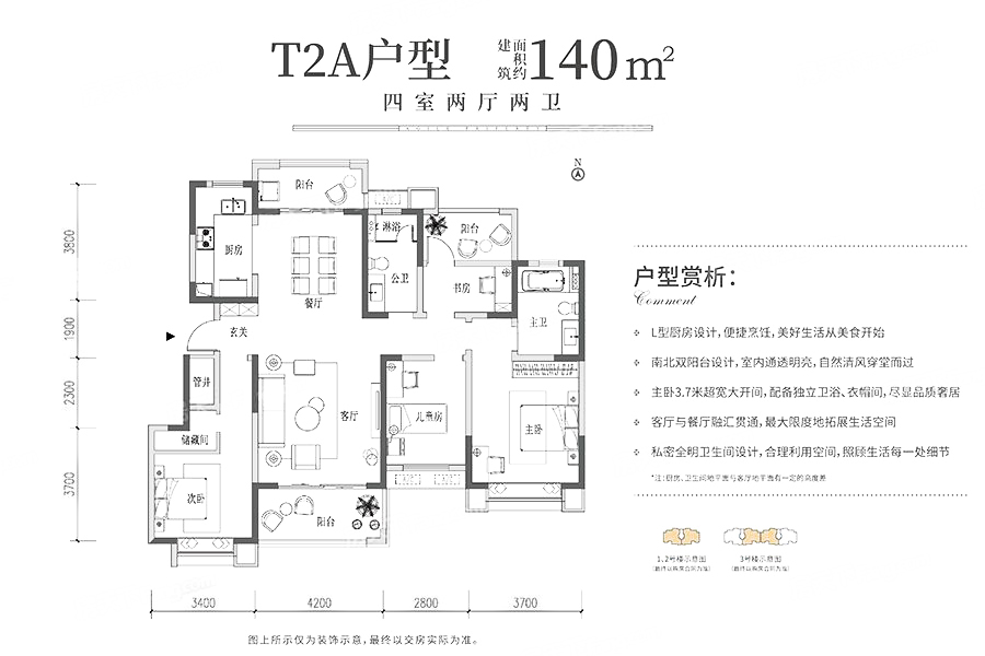 各个空间户型方正,方便室内家具布置;全明通透户型,居住舒适度较高,整个空间采光充足,利于后期居住;从卧室进卫生间需要穿过餐厅或客厅;卫生间空间不算开阔,装修时要侧重实现其功能性;公摊高于15%且低于25%,符合住宅公摊正常范围。